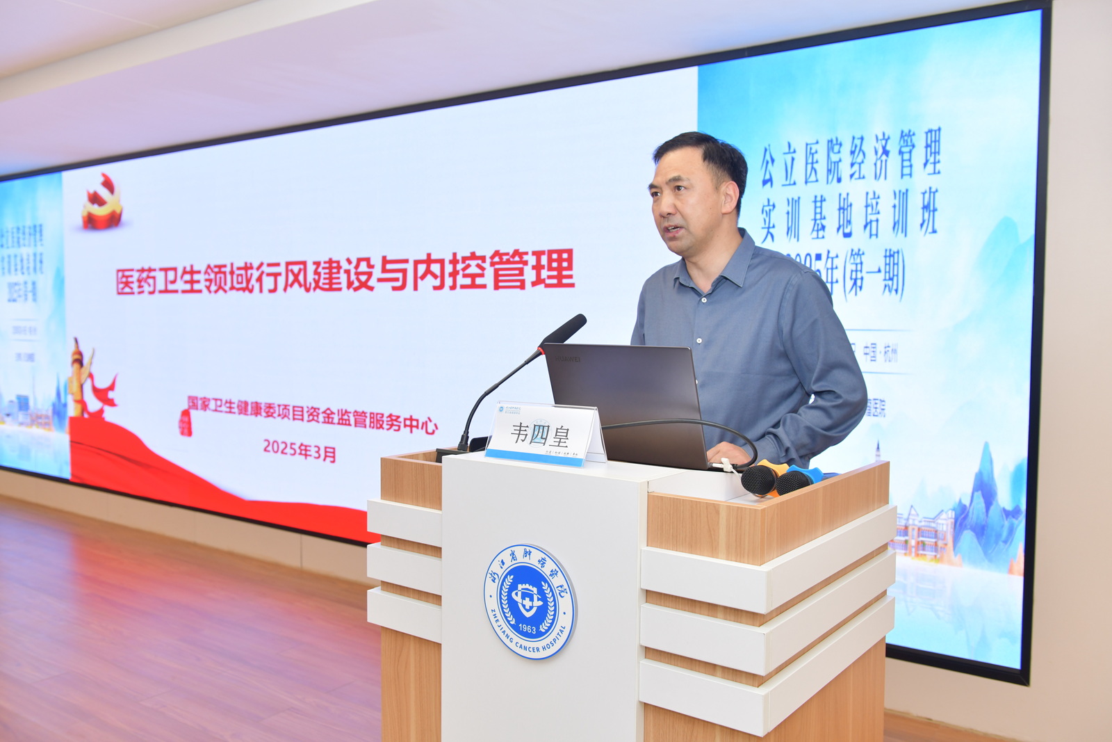 韦四皇同志出席了浙江省肿瘤医院首期实训基地培训班开班仪式,并开展“医药卫生领域行风建设与内控管理”专题授课。